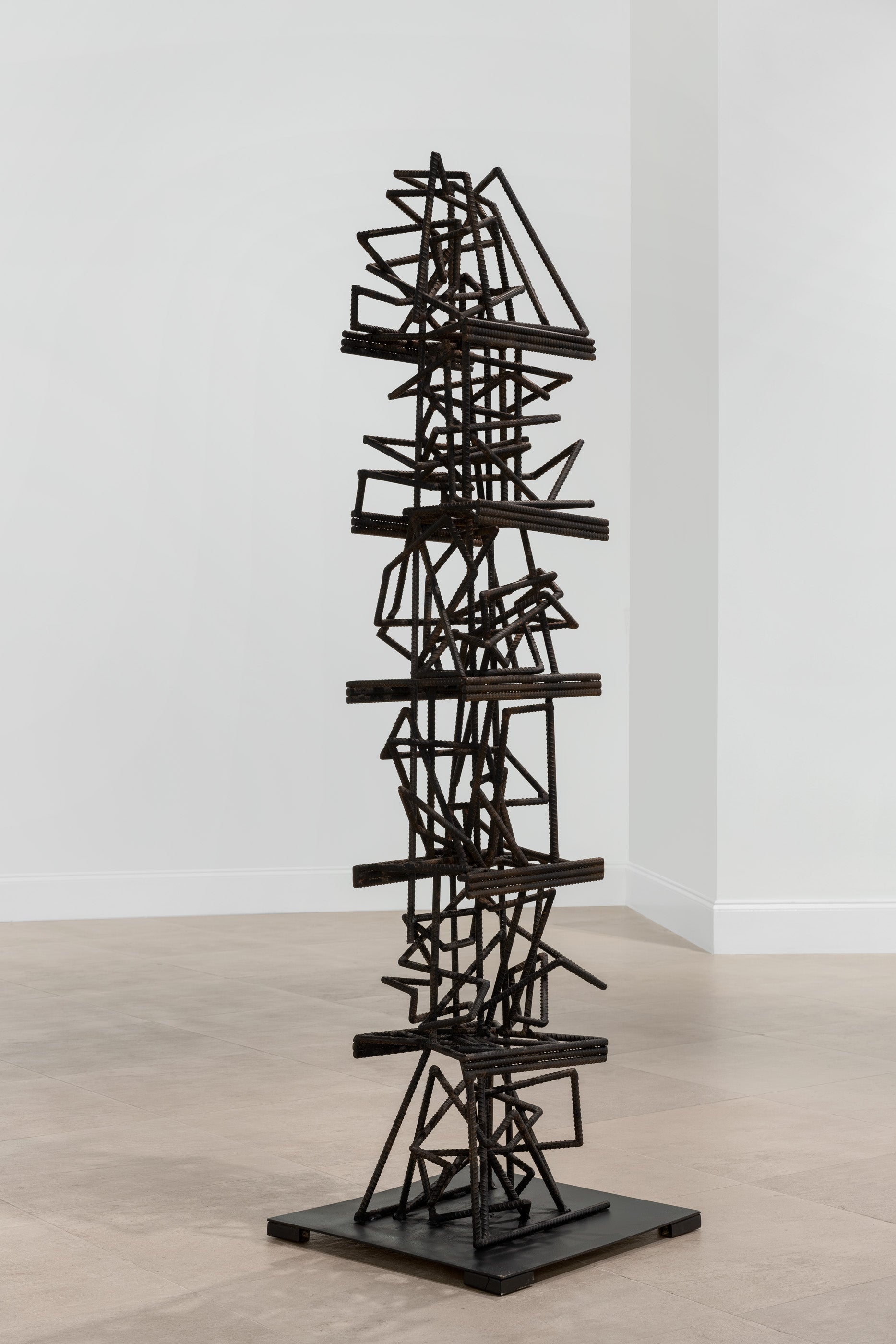 Welded rebars, rust patina, black paint